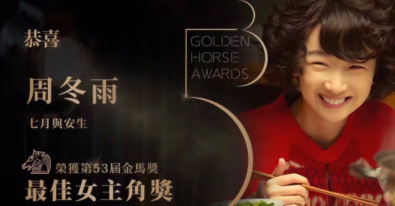 11月26日,第53屆臺灣電影金馬獎頒獎禮在臺北舉行。由陳可辛、許月珍監(jiān)制,曾國祥執(zhí)導(dǎo),周冬雨、馬思純、李程彬聯(lián)合主演的電影《七月與安生》改寫金馬獎歷史。
